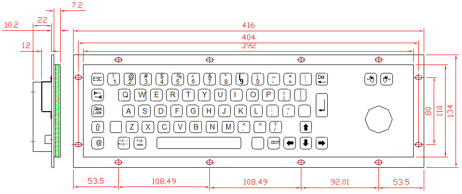 Type: Vandal-proof Metal keyboard with TrackBall (protected keyboard) Dimensions: 392õ110 mm Additional: — 64 keys — To enter any data from any program — Compatible with Windows 98/ME/2000/XP — High level of protection makes this keyboard possible to be used in any crowded places — Cleaned easily — PS/2 - cable — Caps Lock Indicator Material: — Front panel: stainless steel 304