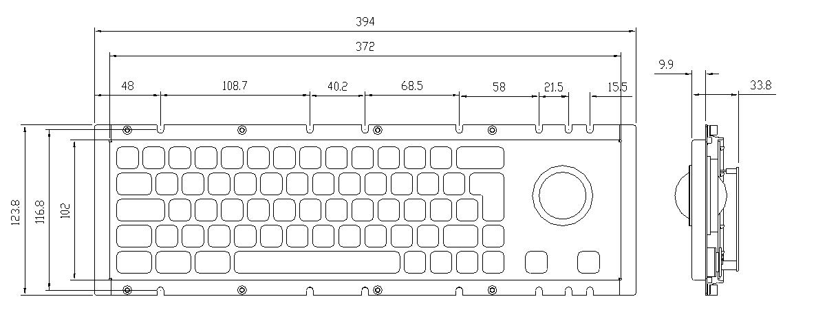 Type: Vandal-proof Metal keyboard with TrackBall (protected keyboard) Dimensions: 372õ102 mm Additional: — 66 keys — To enter any data from any program — Compatible with Windows 98/ME/2000/XP — High level of protection makes this keyboard possible to be used in any crowded places — Cleaned easily — PS/2 - cabel — Caps Lock Indicator Material: — Front panel: stainless steel 304